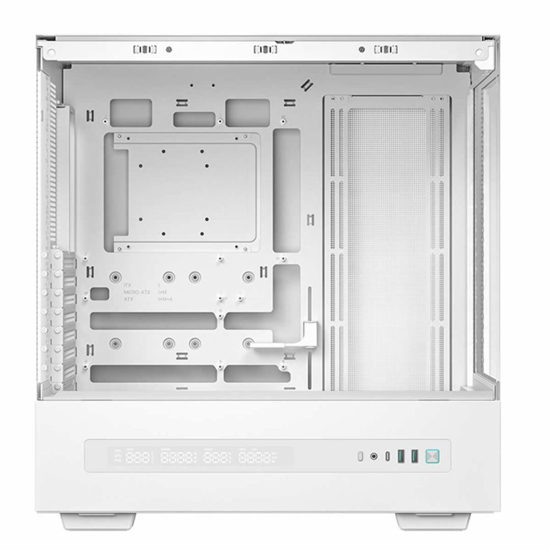 The DeepCool CH690 Digital White ATX Case is designed with beauty and adaptability in mind. It features a semi-glass panel that offers an expansive view of installed components. For those seeking enhanced performance, the rear of the case supports DIY modifications, allowing users to replace the semi-glass panel with a mesh panel and fan bracket to boost horizontal airflow. Additionally, the integrated light strip slot enables the addition of light strips to create an immersive gaming atmosphere, blending aesthetics with functionality for a truly personalized setup.