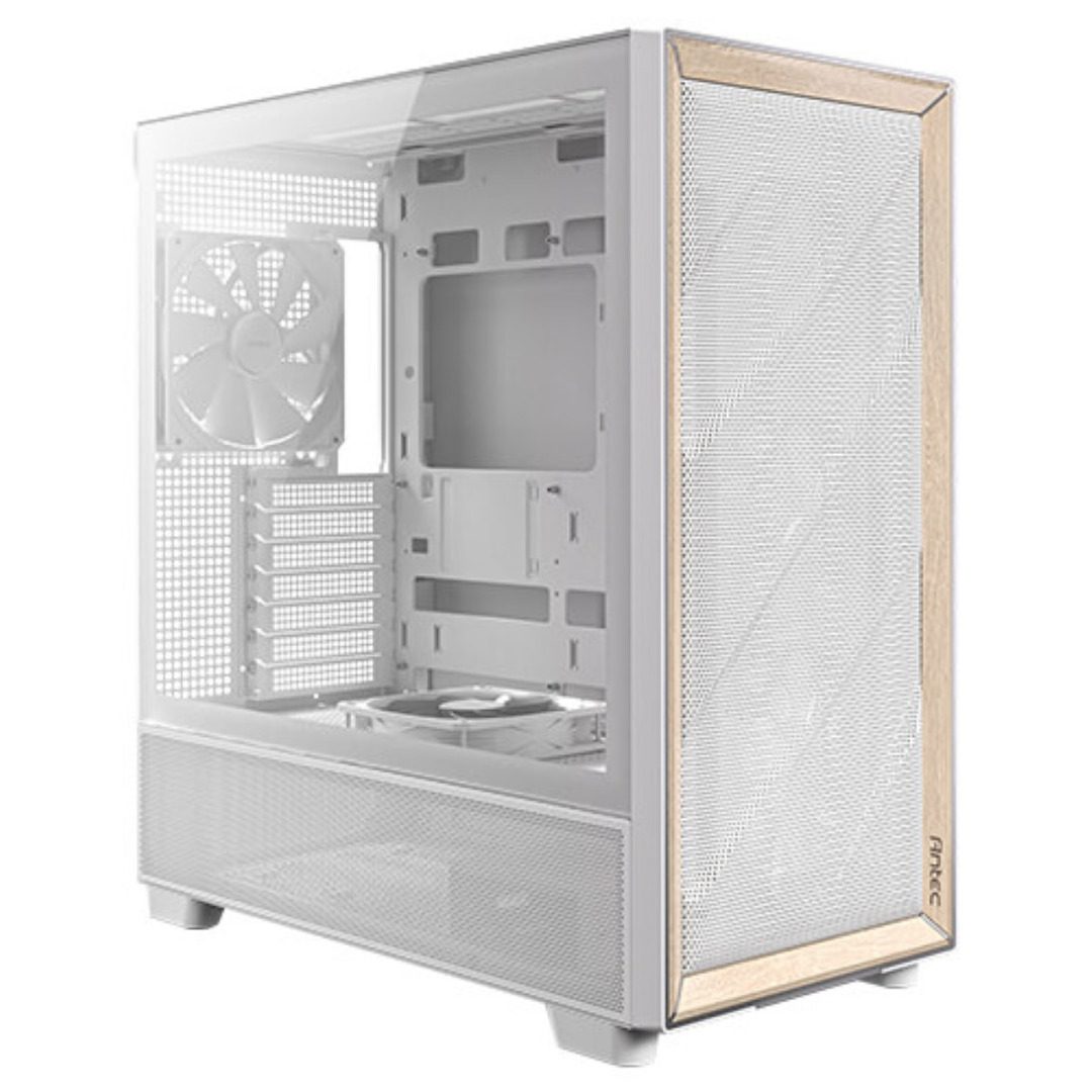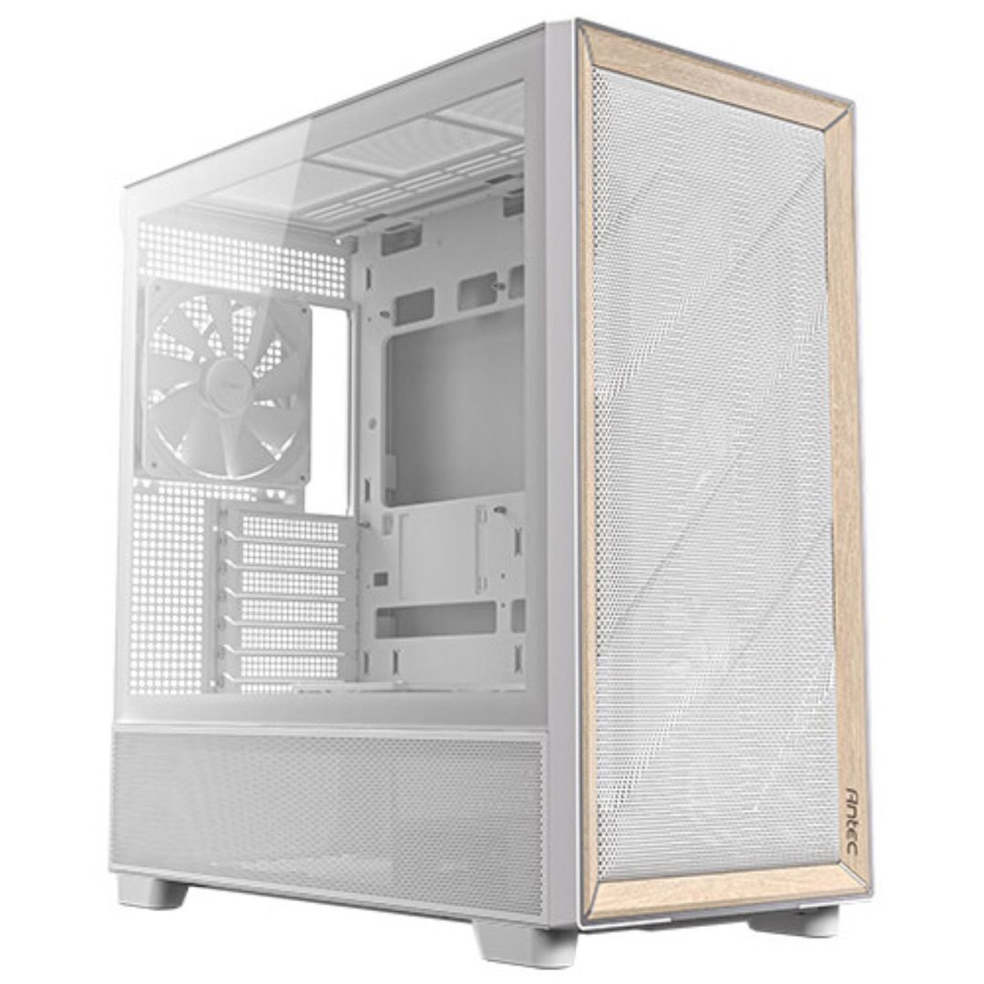 Antec FLUX ARGB Gaming Case Glass Side E-ATX Mesh Wood Front - BTF Ready - White