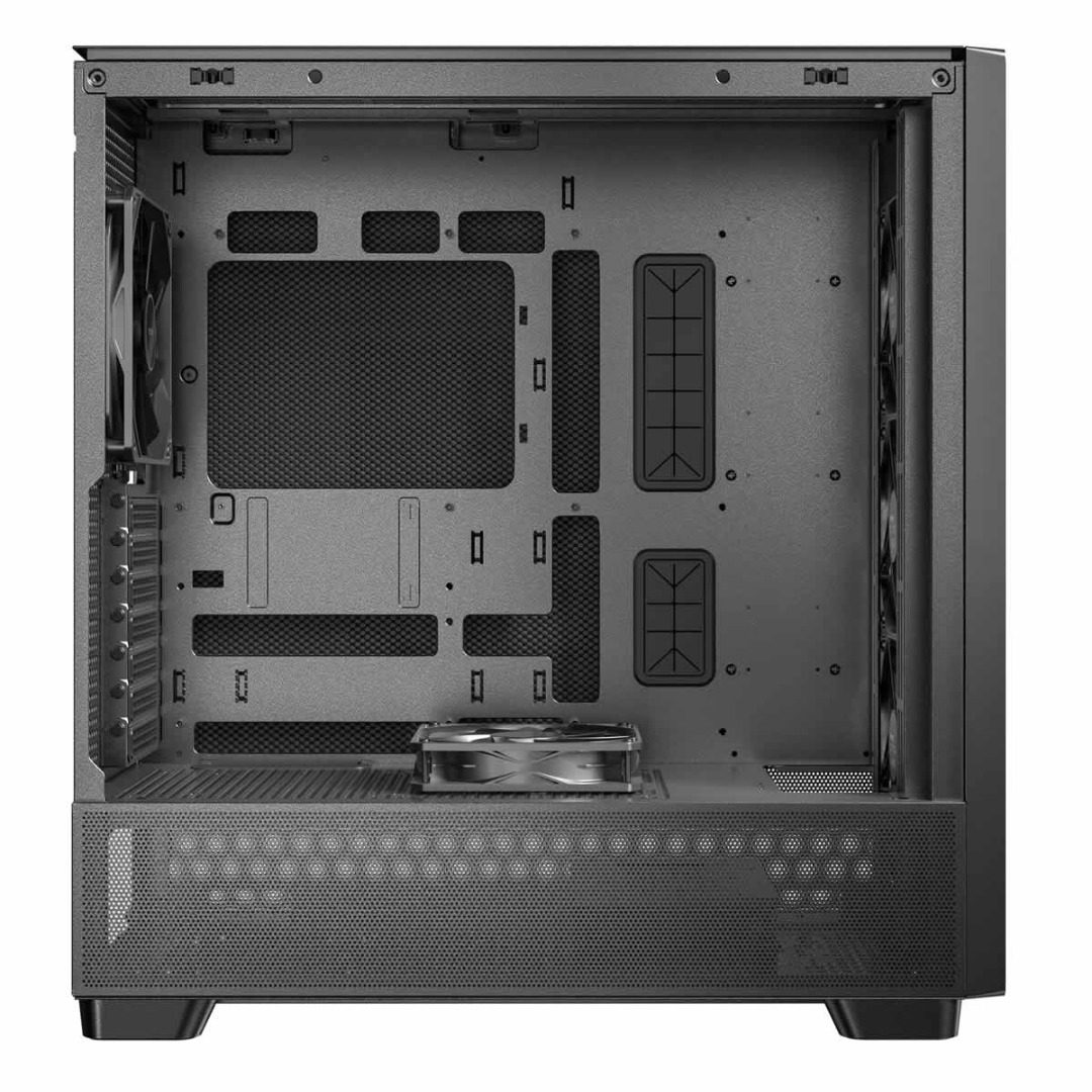 Multi-Directional Vent Design: Extensive air intakes at the bottom, power supply chamber, lower sides, top vents, and large-area mesh at the front create a dedicated Antec Flux airflow channel.