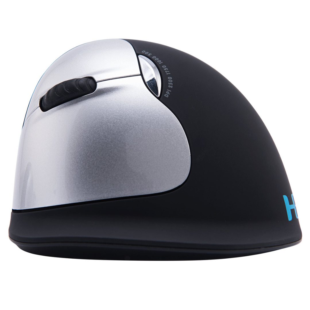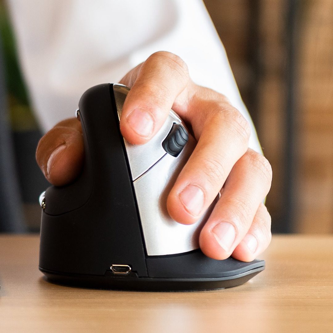 The ergonomic R-Go HE mouse has a round shape that ensures a natural, relaxed position of your hand and wrist. The vertical position stimulates mouse movements from your forearm. This prevents physical complaints such as CANS. The mouse fits comfortably in the hand and has a thumb and little finger support, so all fingers are supported. The ergonomic R-Go HE mouse is available for left- and right-handed use and in different sizes to fit any hand.