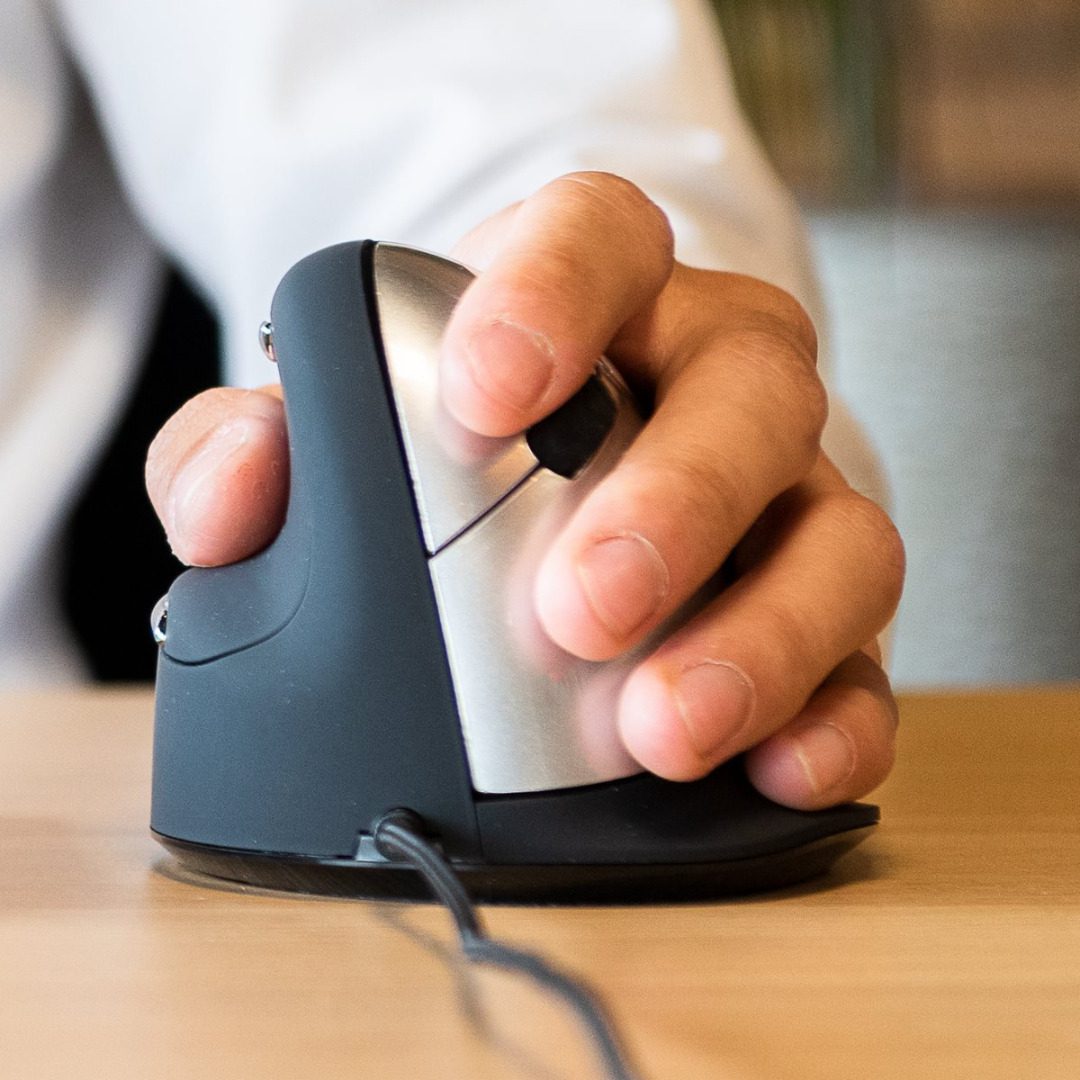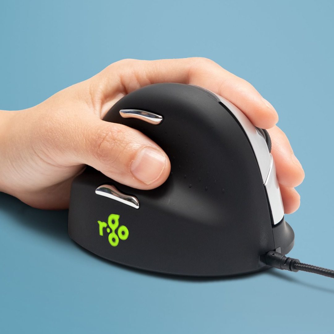 The ergonomic R-Go HE mouse has a round shape that ensures a natural, relaxed position of your hand and wrist. The vertical position stimulates mouse movements from your forearm. This prevents physical complaints such as CANS. The mouse fits comfortably in the hand and has a thumb and little finger support, so all fingers are supported. The ergonomic R-Go HE mouse is available for left- and right-handed use and in different sizes to fit any hand.