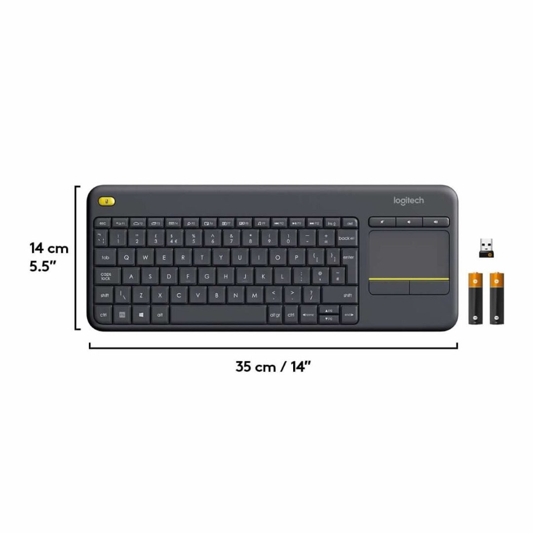 Wireless plug-and-play keyboard with integrated touchpad for total control of your TV-connected PC from your couch. K400 is a quiet, easy-to-use keyboard with a built-in touchpad, plus all the hotkeys Windows and Android users know and love. Complete with media controls that make navigating your PC-controlled TV a breeze.