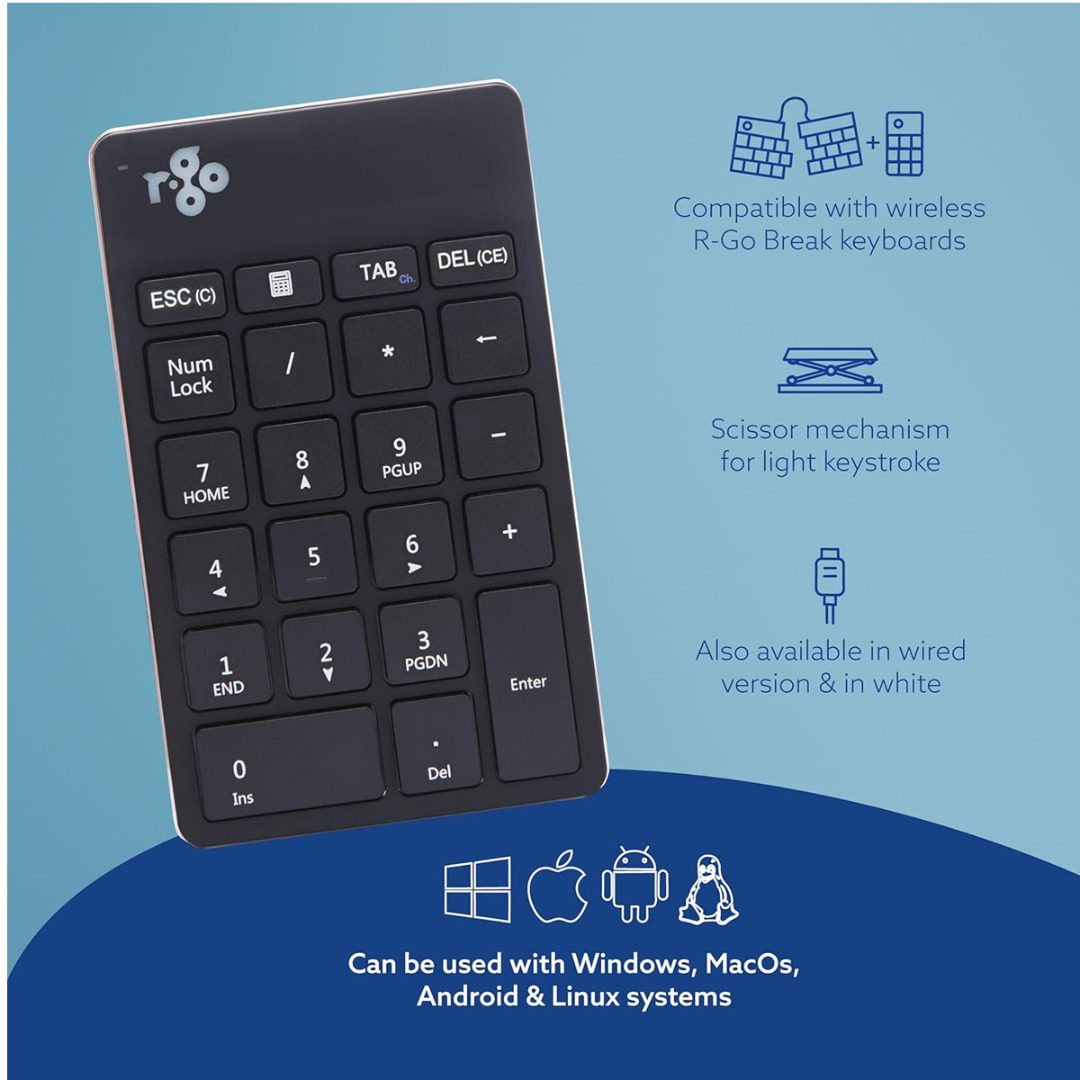Numeric Keypad R-Go Numpad Break Ergonomic Numeric Keypad Bluetooth Black With Break Software