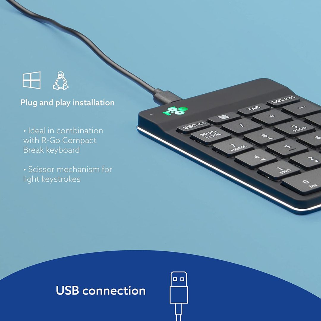 Numeric Keypad R-Go Numpad Break Ergonomic Numeric Keypad Wired Black With Break Software