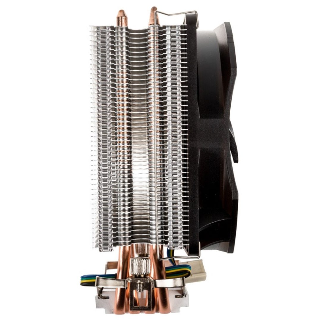 The supplied 120 mm fan with white LEDs ensures a quick removal of heat. Zalman equips it with a rifle bearing for a smoother ride and longer life. The shark fin blades reduce vibration and increase airflow. The 120 fan rotates at 600 to 1,500 rpm, producing a very low noise level with a maximum volume of 26 db (A) and a delivery volume of 103.6 m / h.